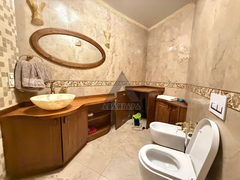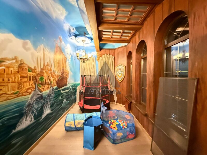 В доме 3 этажа и цокольный этаж, просторные комнаты, гардеробная, санузлы на каждом этаже (включая цокольный), камин, кабинет, 2 кухни (в цоколе и на 1 этаже), уникальный интерьер, комфорт, простор, уют и стиль. Есть бассейн и жаркая сауна.