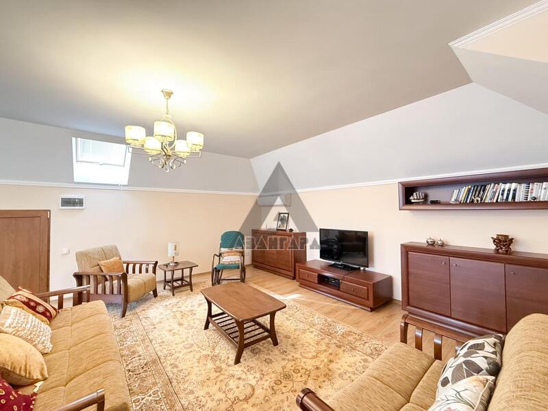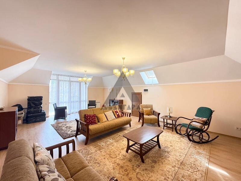 • 3 этаж (мансарда) – элегантная деревянная винтовая лестница со 2-го этажа ведет к свободному пространству с диванами, креслами, телевизором, которое можно использовать как кабинет, игровую или зону отдыха. Имеется небольшой открытый балкон с террасой.