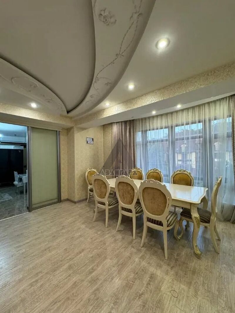 Общая площадь — 420 кв. м. Квартира занимает три этажа и расположена на третьем этаже дома 2011 года постройки. Формат идеально подойдёт для большой семьи или тех, кто ценит простор и приватность.