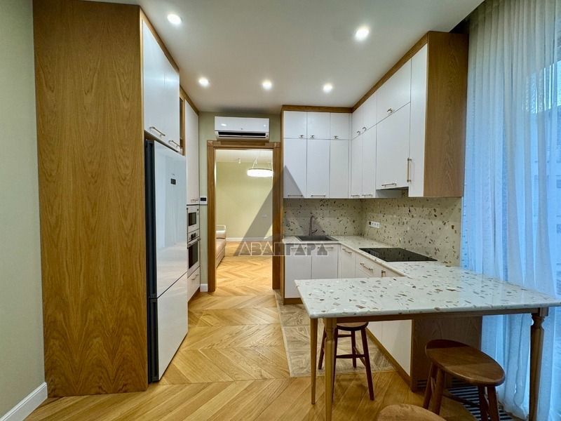 Квартира полностью готова к заселению после капитального ремонта, выполненного с использованием качественных материалов.