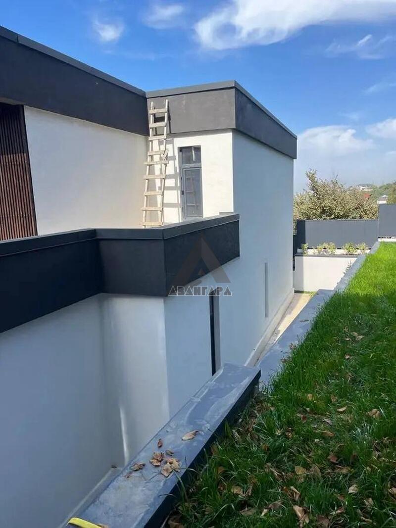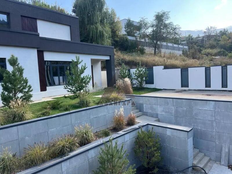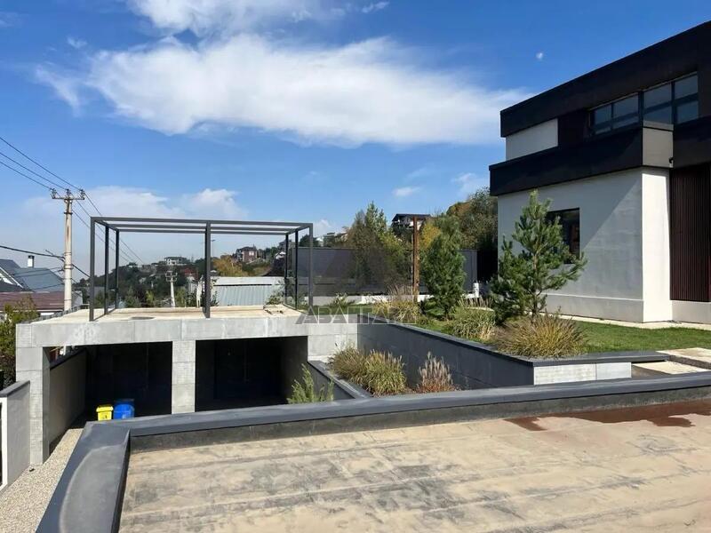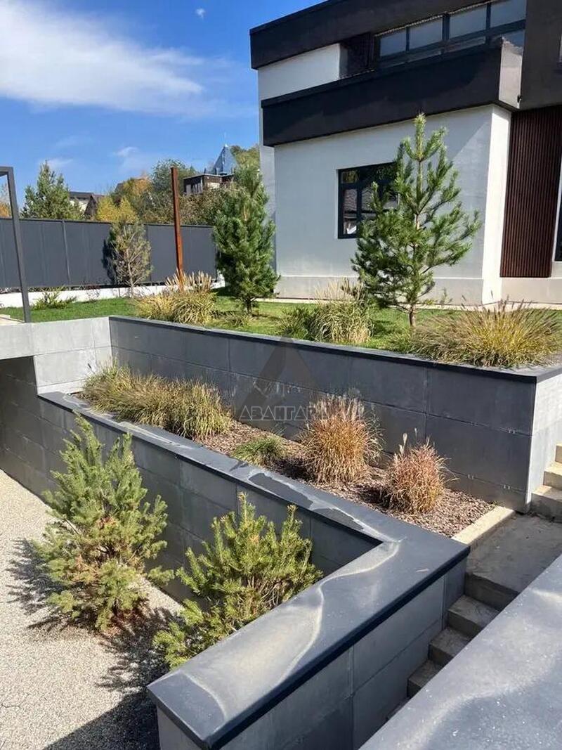 Обустроен двумя уровнями, укреплен 2 подпорными стенами из бетона марки 350 и 18-й арматурой. На участке расположены парковка, котельная и дом, есть возможность надстроить сверху парковки или котельной дополнительные сооружения, например баню или зону барбекю.