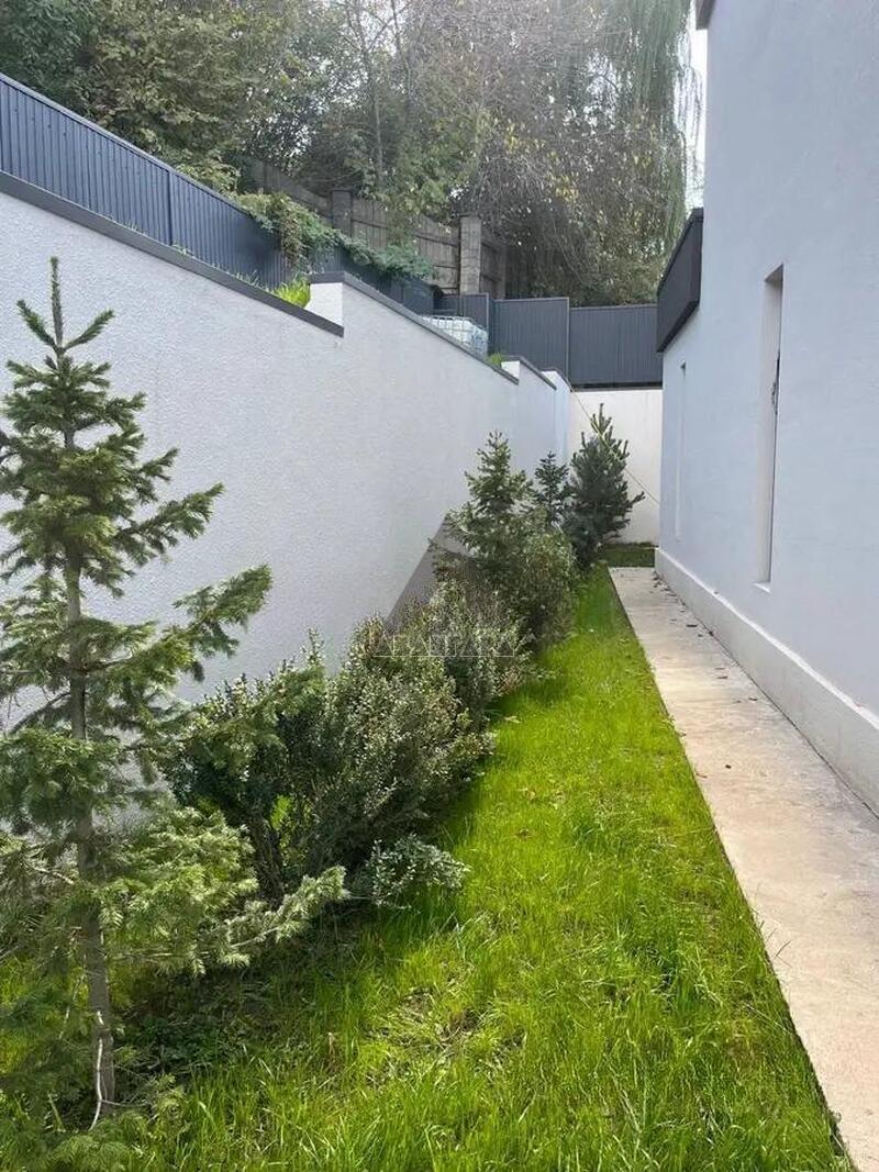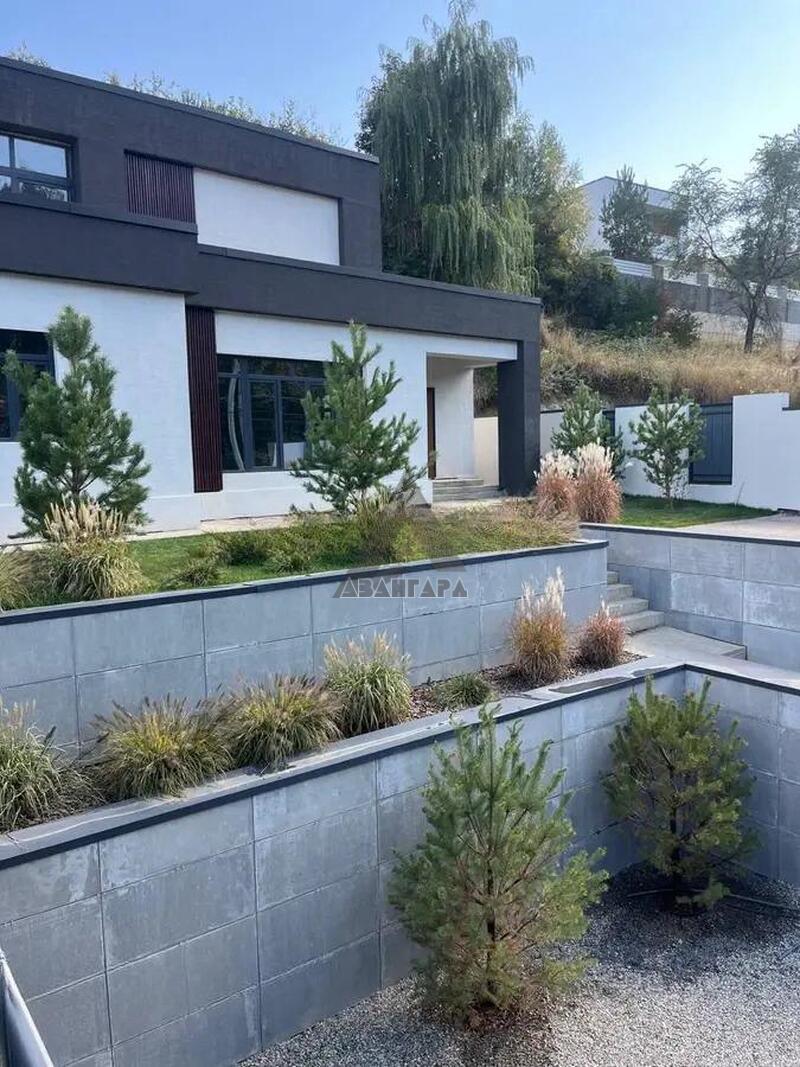 Обустроен двумя уровнями, укреплен 2 подпорными стенами из бетона марки 350 и 18-й арматурой. На участке расположены парковка, котельная и дом, есть возможность надстроить сверху парковки или котельной дополнительные сооружения, например баню или зону барбекю.