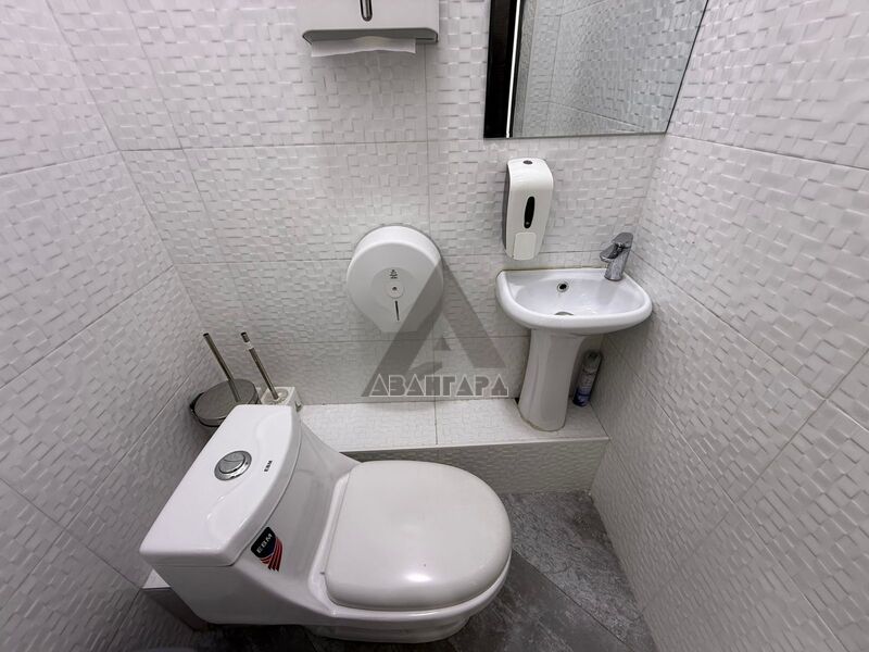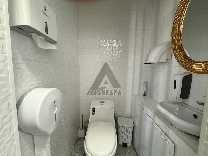 расположена оборудованная кухня, а также предусмотрен отдельный вход с улицы, что идеально подойдет для формата кофейни, выпечки или продажи еды и напитков навынос. Также имеется отдельная зона, которую можно использовать под химчистку одежды, обуви или прачечную.