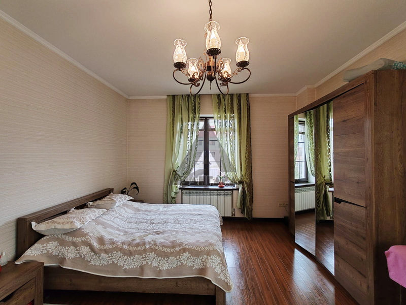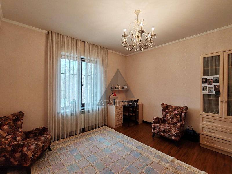 В доме удобная планировка, светлые, уютные комнаты, чисто и комфортно. Вместительная кухня, большая гостиная комната, несколько спален и комнаты с возможностью обустроить под кабинет и игровую, гардеробные, просторный цокольный этаж, а также жаркая баня на газе.
