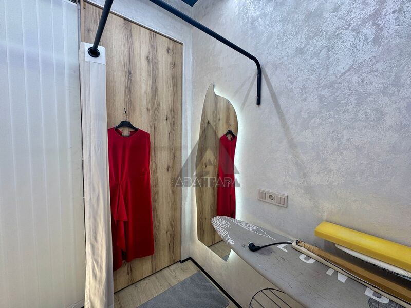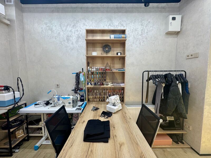 Идеально подойдёт под ателье — в помещении остаются все необходимые материалы и оборудование: швейные машинки, оверлоки и многое другое.